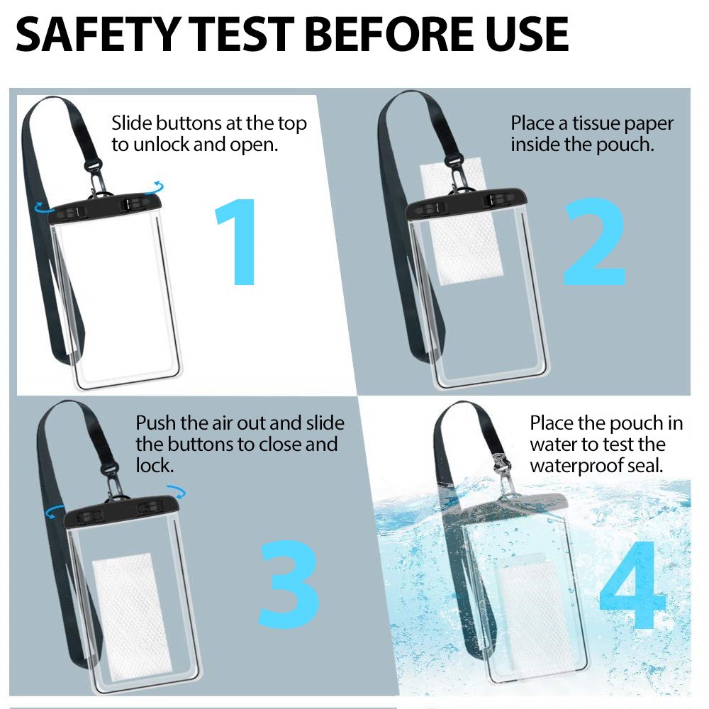 - VERSATILITY: The Waterproof cell phone dry bag fits all large smartphones below 6 inches and can be used to store your personal items such as cash, credit cards, personal ID and much more. It?s perfect for indoor and outdoor activities, traveling and water sports such as diving, boating, skiing, snowboarding, SUP, surfing, fishing and much more.